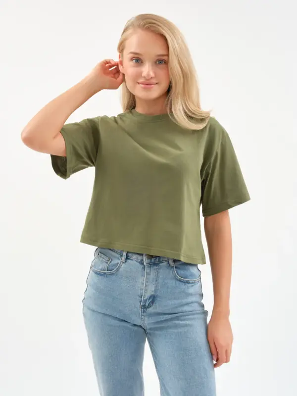 EverHarmony BASIC Женская футболка оверсайз, хлопковая укороченная