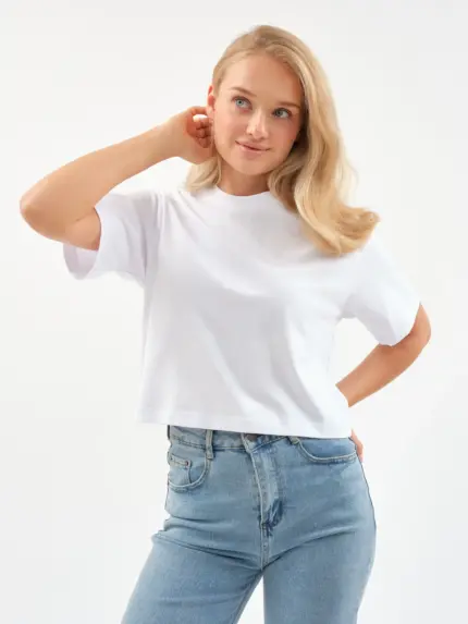 Женская футболка оверсайз EverHarmony PREMIUM, хлопковая укороченная
