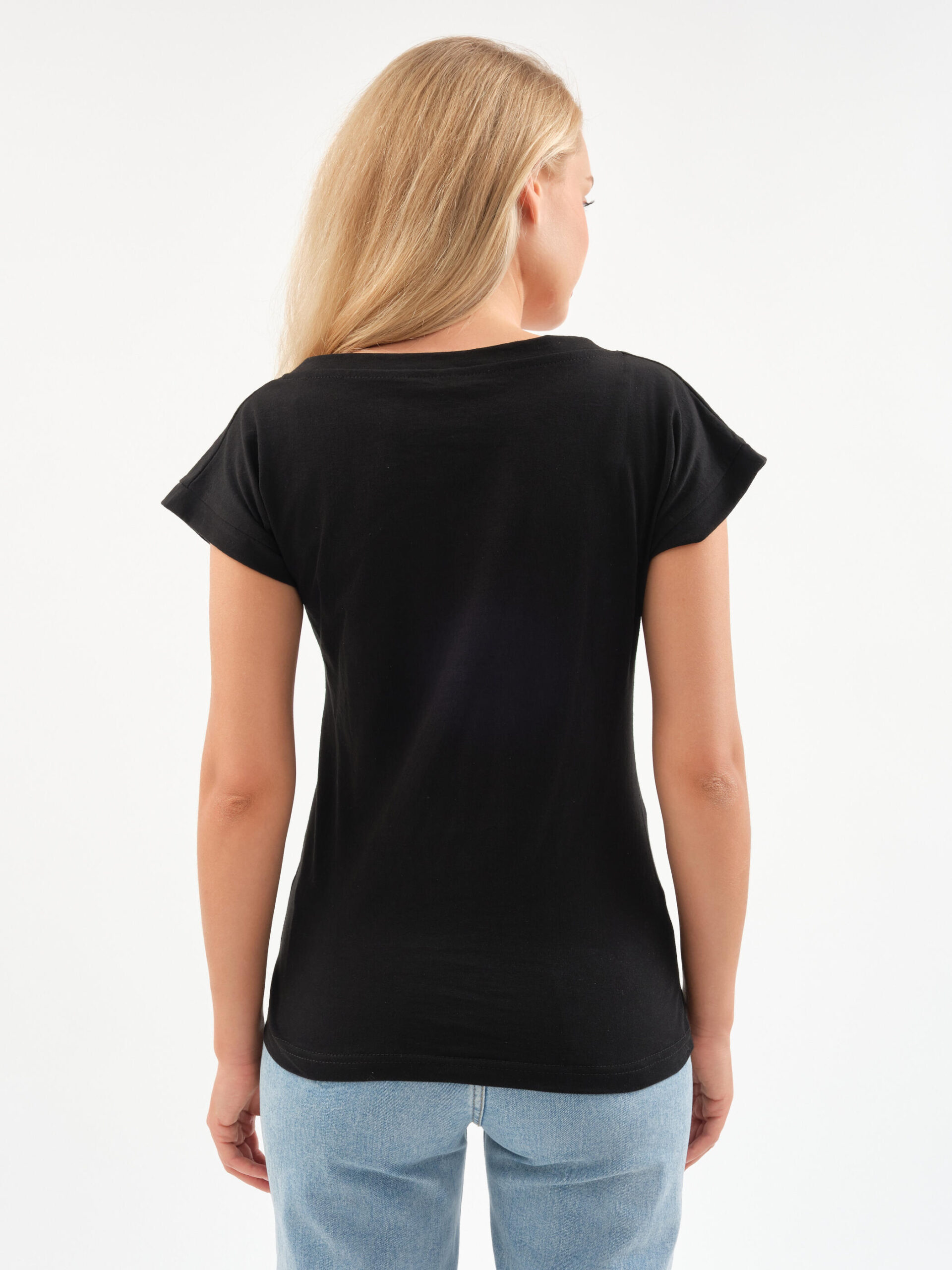 Футболка универсальна: она идеально сочетается с классическими джинсами, строгими брюками, юбками миди или спортивными джоггерами. Носите её как самостоятельный элемент или вторым слоем под жакет, кардиган или рубашку.